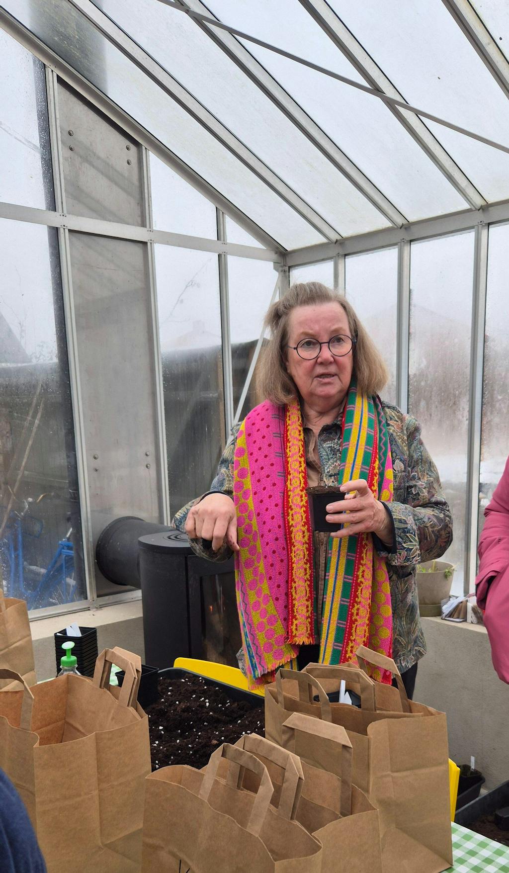 Så nöjd med kursen. Denna kalla vinterdag möttes vi av spännande historia om luktärtan och uppmuntran att intressera oss för de latinska namnen - det förenklar på många sätt. När det sedan blev dags för att plantera så värmde det gott från kaminen i växthuset och vi fick lära oss att noggrannhet hjälper. Praktiska tips med att satsa på hållbart och göda ordentligt. Sedan blev det fantastisk lunch där dotter och barnbarn pysslade om oss.