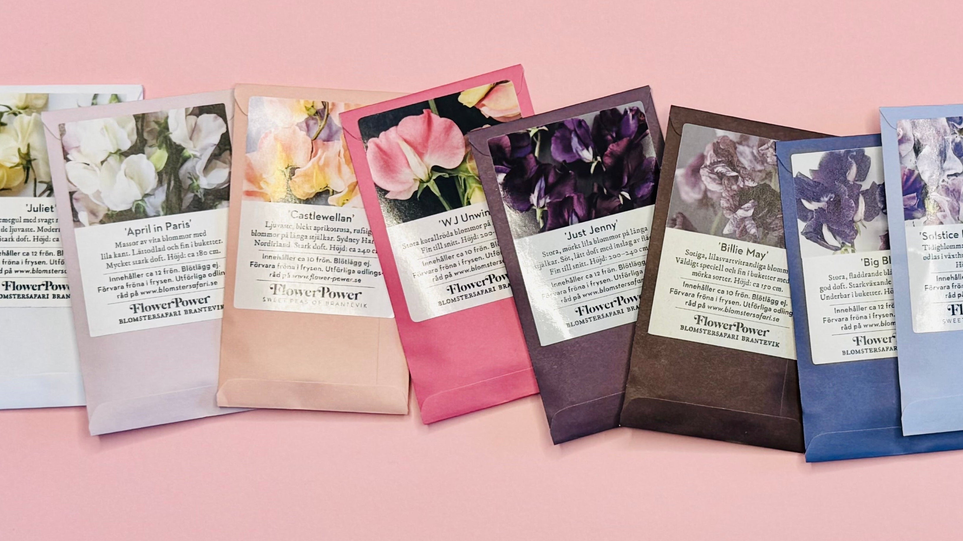 Våra luktärtsfröer odlas i England och skördas för hand. Vi går i god för att våra fröer håller högsta möjliga kvalitet och för att du alltid hittar unika sorter hos oss.