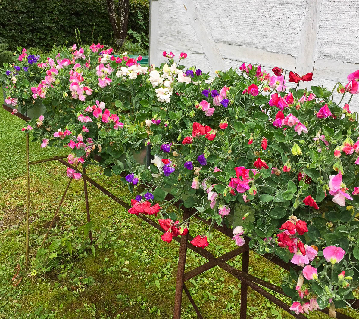 Die Duftwickenmischung Cupid Mix stammt aus dem Jahr 1894 und umfasst viele Sorten niedrig wachsender, stark duftender Duftwicken. Sie werden nur 25 cm groß und passen gut in Töpfe. Pflanzen Sie dicht mit etwa 10 cm Abstand zwischen den Pflanzen. Um die Blüte möglichst lange aufrechtzuerhalten, düngen Sie kontinuierlich und entfernen Sie zu stark verblühte Blüten.